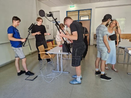 Im Tonstudio „Wunderbar“ wurde es dann richtig aufregend: Die TeilnehmerInnen sprachen Kinotrailer, Werbespots und Filmteaser – live zum Bild, mit Musik und allem, was dazugehört.