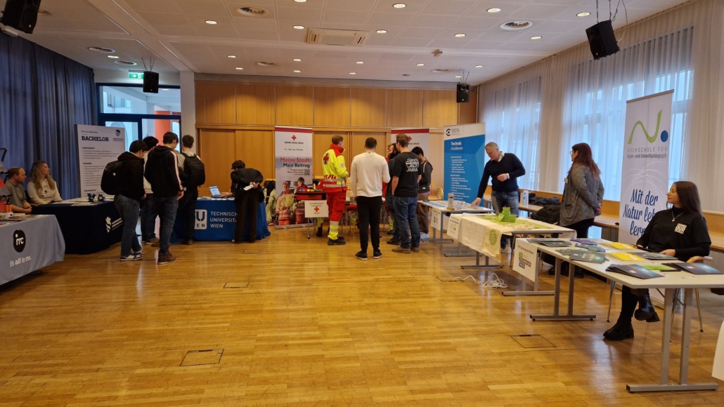 Am 28. Januar 2026 fand an unserer Schule eine gut besuchte Studieninfomesse statt. Insgesamt acht Fachhochschulen sowie zwei Universitäten präsentierten ihre Studienangebote und standen den Schülerinnen und Schülern für Fragen zur Verfügung.
