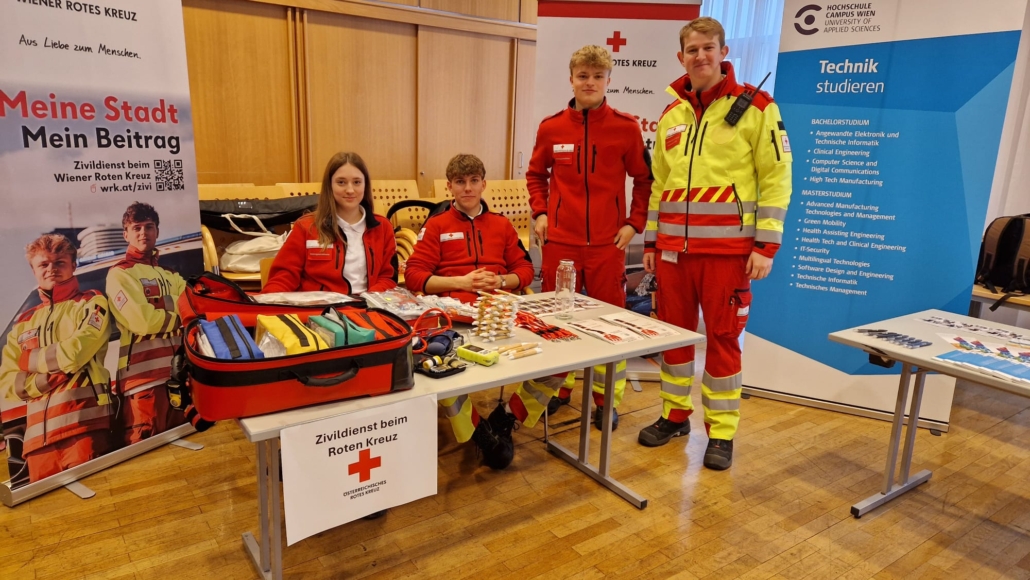 Erstmals war auch das Rote Kreuz mit einem Rettungsauto vor Ort und informierte die Jugendlichen anschaulich über den Zivildienst sowie mögliche Ausbildungswege im Rettungsdienst.