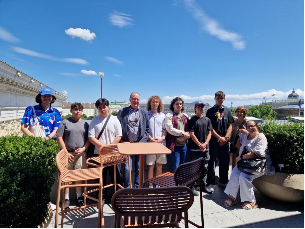 Prof. Mitra Bayandor organisierte und begleitete eine Gruppe von Schülern bei einer Führung durch das angenehm klimatisierte Parlamentsgebäude. Mit dabei waren auch Abteilungsvorständin Prof. Gabi Herrele und Prof. Wolfgang Pratter, die sich übrigens beide demnächst in den wohlverdienten Ruhestand begeben!