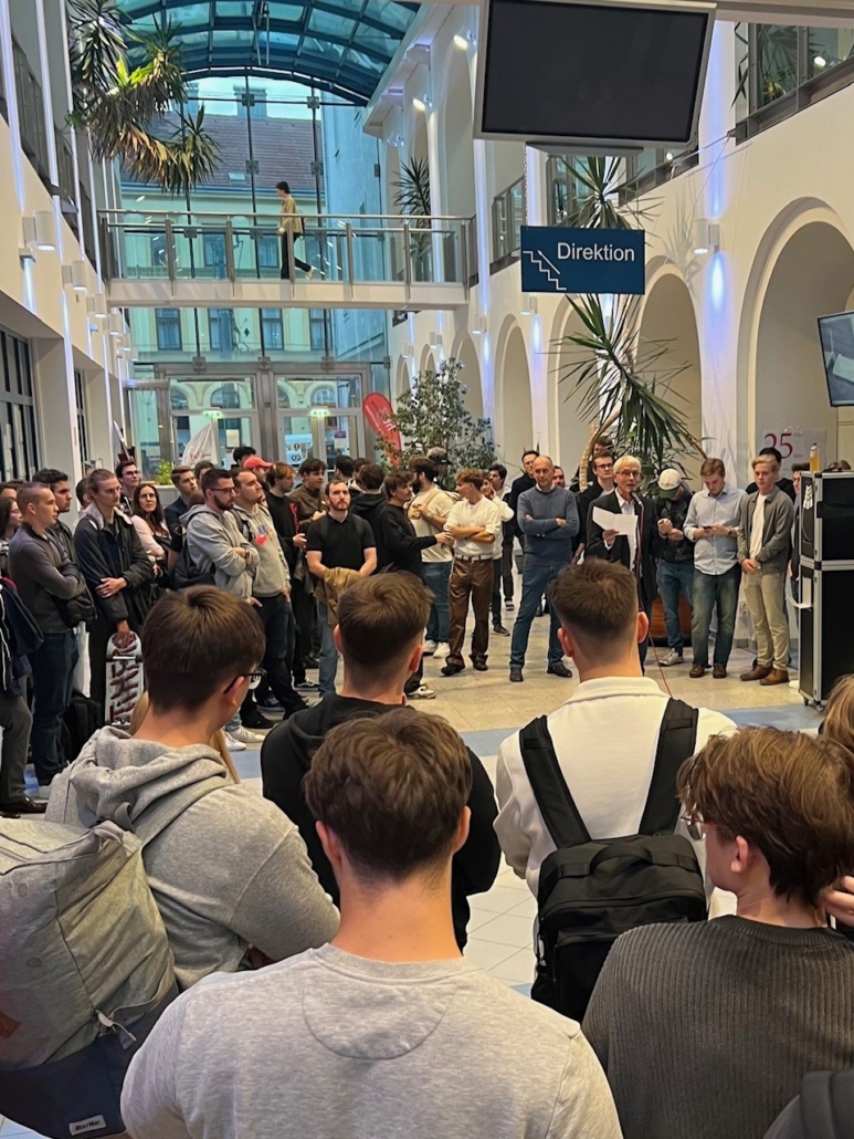 Nach einer offiziellen Begrüßung durch Direktor Gerhard Jüngling begab man sich zum gemeinsamen Sektempfang. Anschließend wurden Führungen durch den gerade erst neu eröffneten Zubau im Dachgeschoss angeboten. Weiters gab es eine Fotoshow mit einer Auswahl aus 25 Jahren HTL Rennweg sowie eine Fotobox für persönliche Erinnerungsfotos. Selbstverständlich durften auch das Networking und der Austausch von Erinnerungen nicht zu kurz kommen.