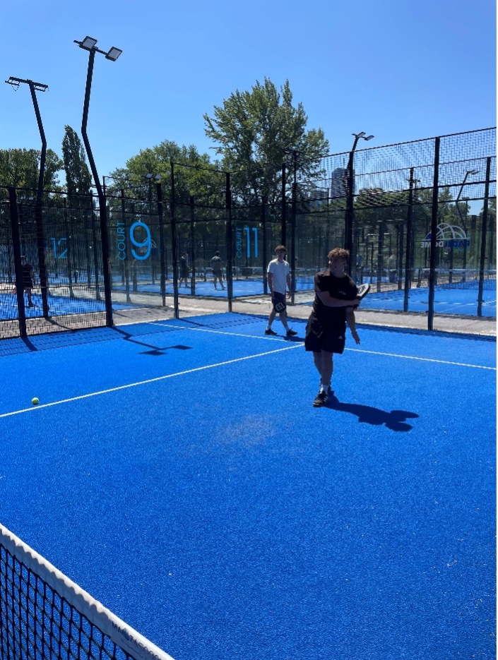 Die 3BM suchte sich samt ihres KV Prof. Johannes Withalm und Prof. Tanja Hertzka unfreiwillig den bisher heißesten Tag des Jahres aus, um an der Alten Donau im „Padeldome“ in der sengenden Mittagssonne (11.00 bis 14.00 Uhr) dem Padel Tennis zu frönen. Nachdem die Spielintensität nach und nach abnahm und die Pausen länger und länger wurden, lockte am Ende der Veranstaltung schließlich die Alte Donau mit einem Sprung ins nicht mehr allzu kühle Wasser.